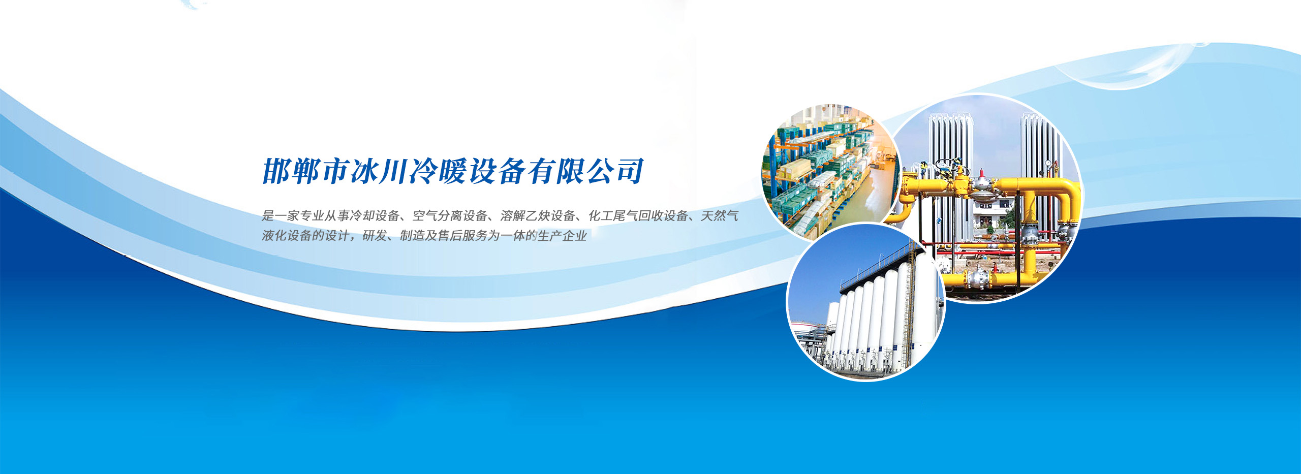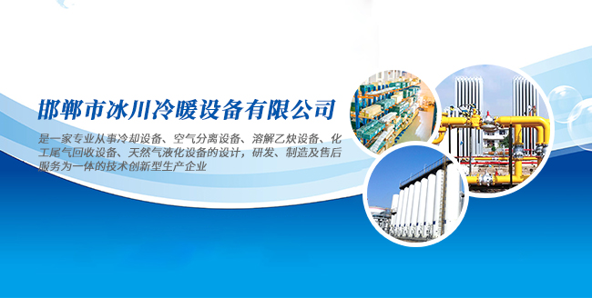邯鄲市冰川冷暖設備有限公司成立于2008年,坐落于歷史名城邯鄲,是一家專業(yè)從事冷卻設備、空氣分離設備、溶解乙炔設備、化工尾氣回收設備、天然氣液化設備的設計,研發(fā)、制造及售后服務為一體的生產企業(yè)。